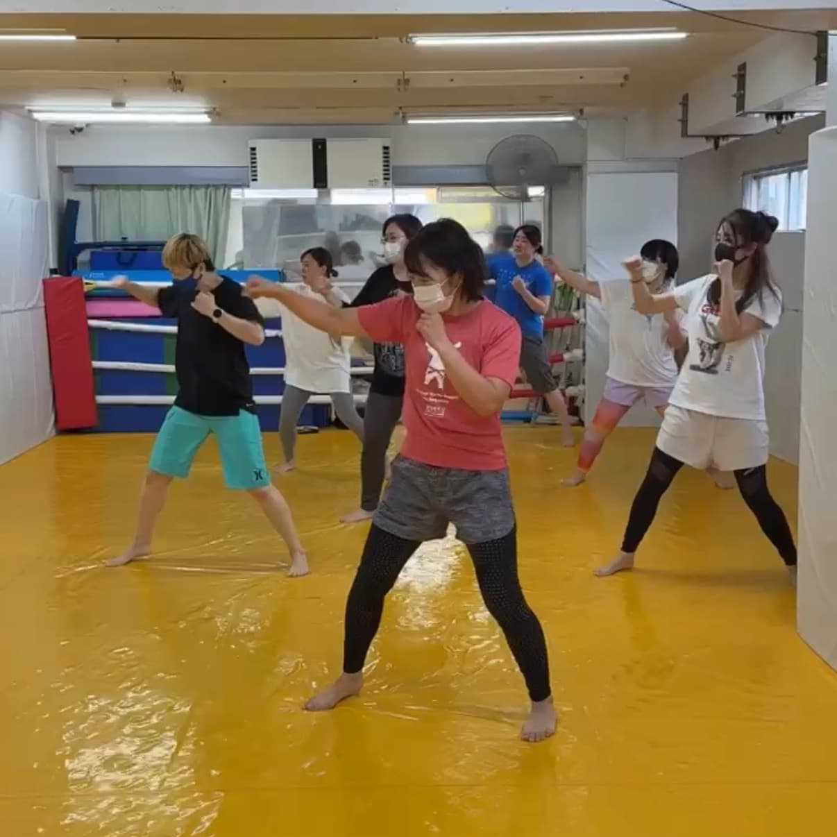 女子専用クラス午前中を中心に主婦やご年配の方向けにプログラムされたフィットネスクラス!!実際にミットやサンドバック相手にパンチ・キックを打つのでストレス解消にも最適~♪楽しみながら汗を流すこと、運動不足解消を目的としています。